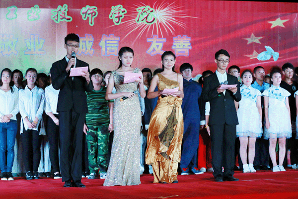 9月29日晚,我院2015“庆国庆,迎新生”文艺晚会在学院体育场隆重举行。副院长张品文,学生工作处、团委、各系负责同志与学院全体学生一起观看了晚会。 缘聚天润,共贺中秋,喜迎国庆。晚会在架子鼓表演《海阔天空》中拉开...
