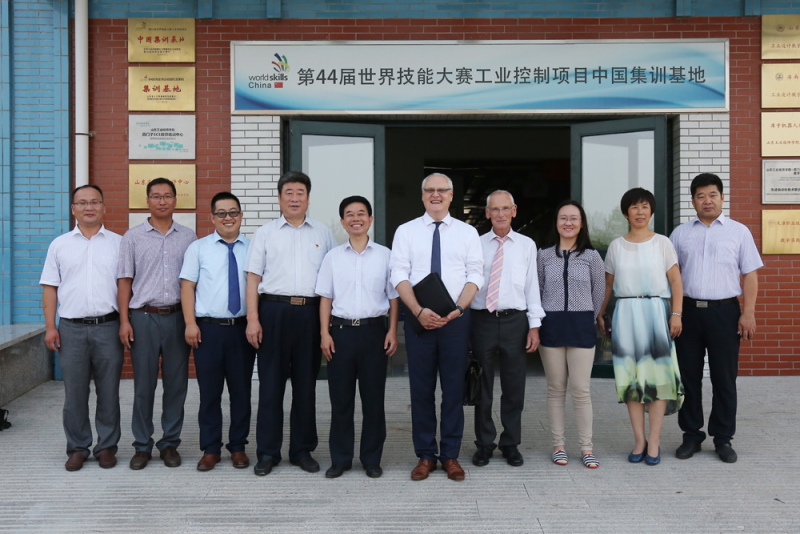 8月17日,山东化工技师学院党委书记王兴军、院长孙晋东一行5人,来我院考察交流。学院党委书李献坤、院长邱尔臣、副院长张品文热情接待了来宾,有关部门负责同志参加活动。 客人一行参观学院世界技能大赛工业控制项...