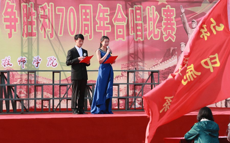 10月29日,为纪念中国人民抗战胜利70周年,弘扬伟大的抗战精神,用歌声唱响民族激情,由院团委、学工处主办,印刷工程系团总支承办的“纪念抗战胜利七十周年合唱比赛” 在学院体育场隆重举行。 比赛在汽车工程系14级合唱...