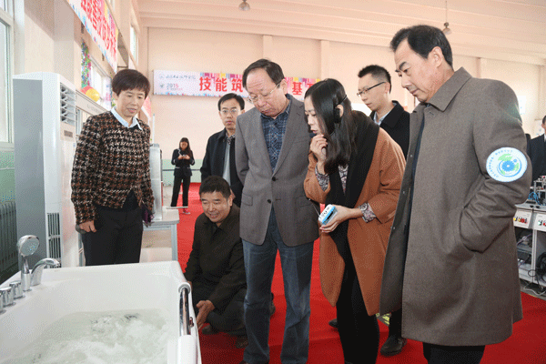 院领导高度重视第一届技能文化节的举办,现场观看我院教师专利创新产品——节能舒适浴缸。