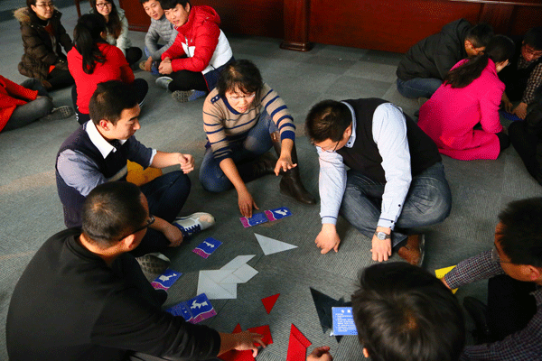 曹卫国主任从问题的提出、教育对象现状分析和思考、改革与实践、对班主任工作的启示和焦点问题等五个方面系统阐述了技工院校学生品德教育改革与实践。曹卫国主任的讲座紧紧围绕技工院校学生现状及品德教育的实施这一主线,理论联系实际,既有睿智的教育思想、前沿的教育理念,又有典型案例。同时,他还结合实际,对我院德育和学生工作进行了综合性的分析点评。讲座结束,曹卫国主任组织开展了七巧板拓展活动;他从团队建设及体验、焦点问题的引出、学生品德教育理论与实践等三个方面对拓展活动的目的和意义进行了阐述。