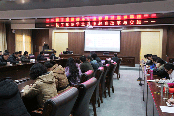 2015年11月29日,我院德育改革与实践讲座在院学术报告厅举行。中山大学公共管理硕士、教育管理高级讲师、高级职业指导师、南粤优秀教师、德育首席教师、广东省轻工业技师学院教研督导室主任曹卫国应邀主讲。相关处室、系部负责同志和班主任老师112人参加了讲座。学生工作处处长李晓东主持讲座。