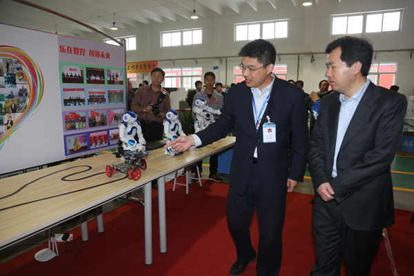 在数控实训中心和工业控制实训中心,张立新司长认真了解了我院数控技术系专业设置、校企合作、技能大赛备战和世赛标准集训基地建设等情况,并对我院在一体化教学改革和以工业控制、机器人、无人机、3D打印等为代表的前沿科技上的专业创新和设施配备表示充分肯定。
