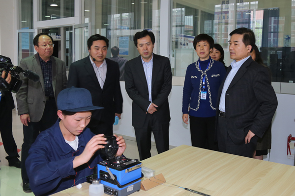 本站讯(通讯员吕春作)4月26日下午,国家人力资源和社会保障部职业能力建设司司长张立新一行五人在省人力资源社会保障厅副厅长刘杰、潍坊市人力资源和社会保障局局长李静波、省厅职业能力建设处处长李启国等陪同下, 莅临我院视察指导。院领导李献坤、孙义宝、王忠厚、张品文、于书兴陪同活动。