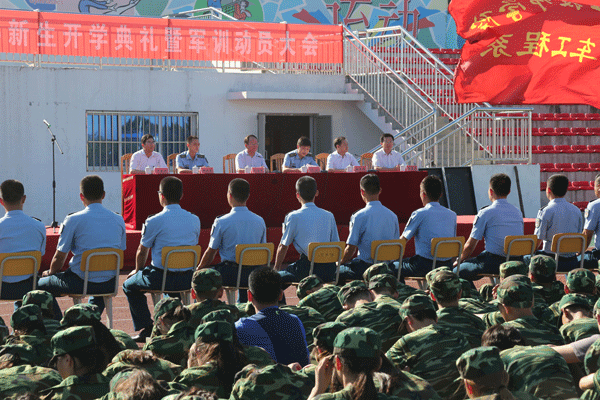 本站讯(通讯员 吕春作)秋风送爽,丹桂飘香。我院迎来了2016级秋季1800余名新同学。8月26日下午,2016级秋季新生开学典礼暨军训动员大会在运动场隆重举行。学院党委副书记、院长李献坤,中国人民解放军某部首长代波,军训团团长徐兆鑫,学院党委副书记孙义宝,纪委书记于书兴,院长助理、党政办公室主任孙希涛出席大会并在主席台就坐,全体新生参加大会。大会由孙义宝副书记主持。