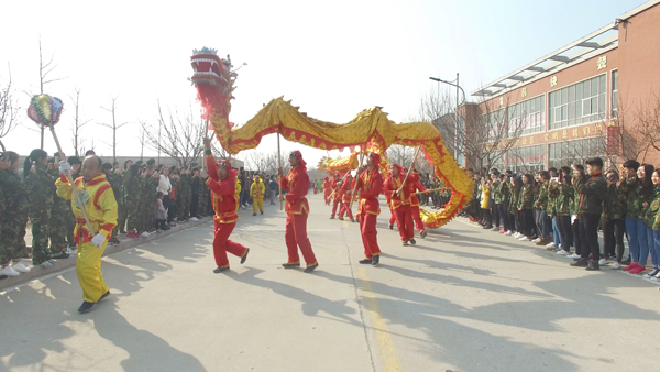 威武的长龙,激昂的锣鼓,欢快的秧歌,展示了美丽乡村蒸蒸日上的幸福生活,赢得了现场师生的阵阵掌声。