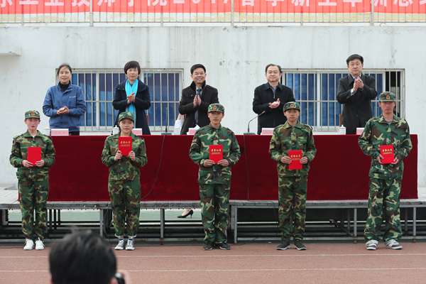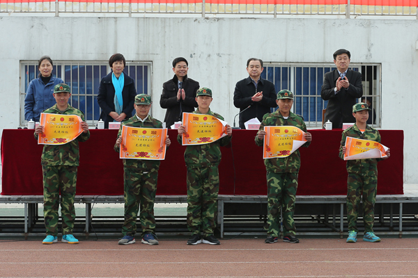 张品文副院长宣读了学院2017级春季新生军训工作表彰决定;随后举行了颁奖仪式。