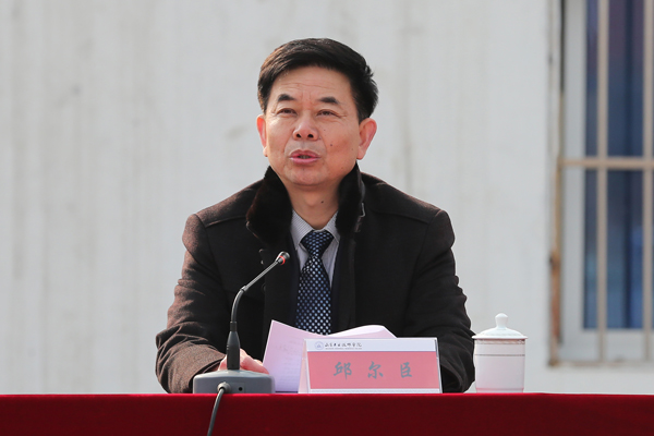 院长邱尔臣发表热情洋溢的讲话。他代表学院向全体军训教官和为军训工作付出辛勤努力的全体教师表示衷心的感谢,向2017级春季新同学致以诚挚的慰问。
