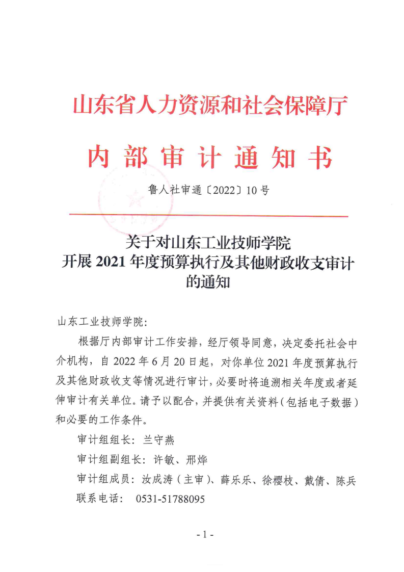 关于对山东工业技师学院开展2021年度预算执行及其他财政收支审计的通知