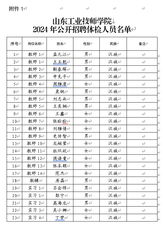 附件1.山东工业技师学院2024年公开招聘体检人员名单