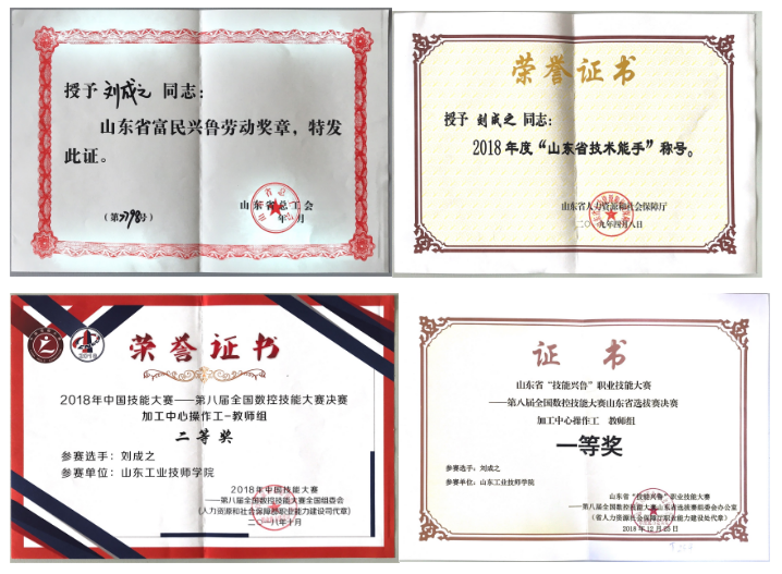 2016年,参加第七届全国数控技能大赛山东省选拔赛加工中心操作工院校组获得二等奖;2018年,参加第八届全国数控技能大赛加工中心操作工教师组获得二等奖;2018年,参加第八届全国数控技能大赛山东省选拔赛加工中心操作工教师组获得一等奖(第一名);2021年,在首届全国工业设计职业技能大赛决赛中担任裁判员。