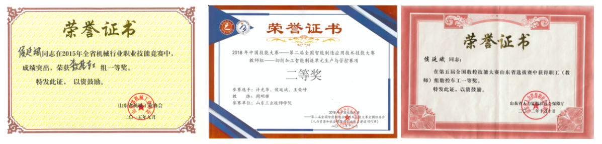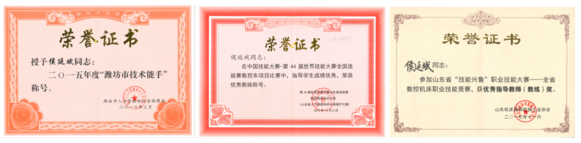 2014年,在第六届全国数控大赛山东省选拔赛指导学生获得数控车项目一等奖;2016年,在第七届全国数控大赛山东省选拔赛在大赛中指导学生获得数控车项目一等奖;2016年,在中国技能大赛—第44届世界技能大赛全国选拔赛中指导学生获得数控车项目一等奖;2017年,在山东省“技能兴鲁”职业技能大赛中指导学生获得数控车项目一等奖。