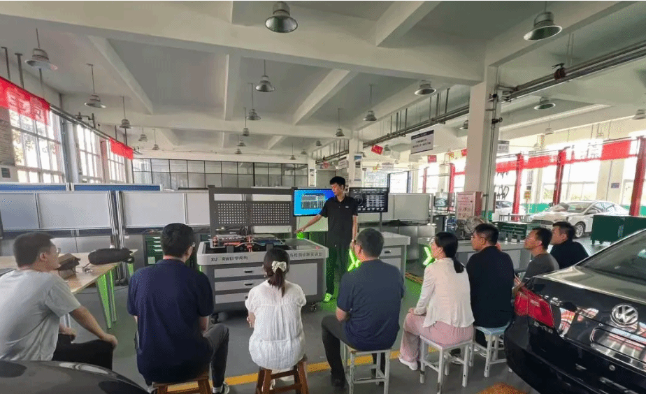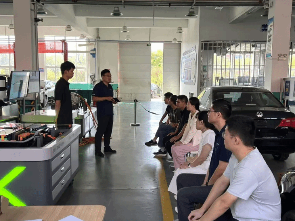 培训特邀企业工程师现场讲解,内容包括新能源三电系统结构原理、故障诊断设备使用、安全操作规范以及实训教学注意事项等。参训教师认真聆听、积极动手实操,就设备使用和课程设计中可能遇到的问题进行了深入交流,进一步熟悉了设备性能,掌握了操作要领,为新学期相关实训课程的高质量开展做好了技术储备。